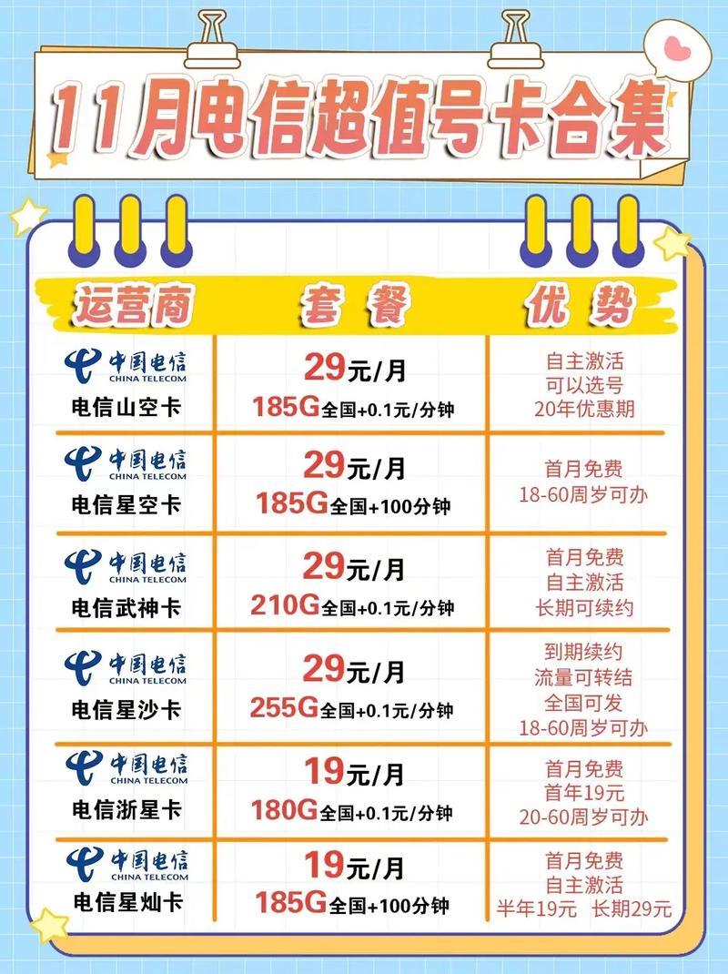 电信大流量手机卡的套餐种类繁多,用户可以根据自己的需求进行选择。以下是一些常见的电信大流量手机卡套餐: