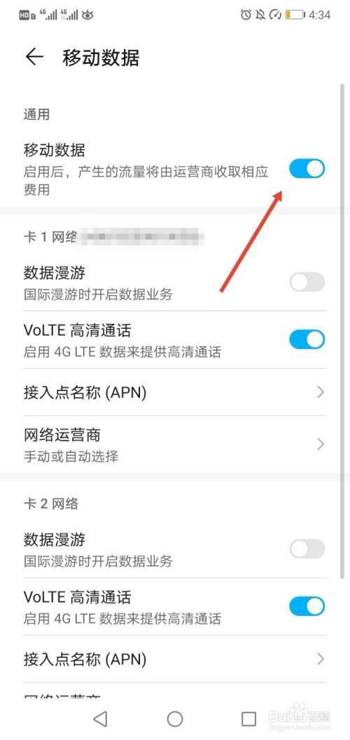 - 确保“移动数据”开关已打开。